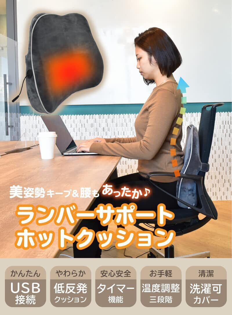 ランバーサポートホットクッションで美姿勢キープ&腰もあったか 腰をあたためながら美姿勢をキープしてくれる この「ランバーサポートホットクッション」がおすすめです!