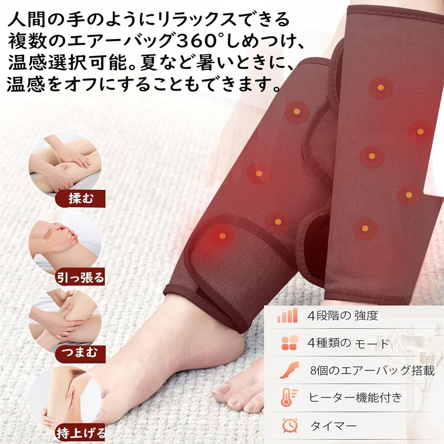 【在庫セール】2025新登場 ふくらはぎリラックス (2個) コード 4段階強度 4種類モード 3段階温度 ヒーター機能 タイマー 急停止保護 エアー式フットケア 3000mAh大容量充電式・80分連続稼働 男女兼用 母の日 父の日 プレゼント 日本語説明書 (黒色)