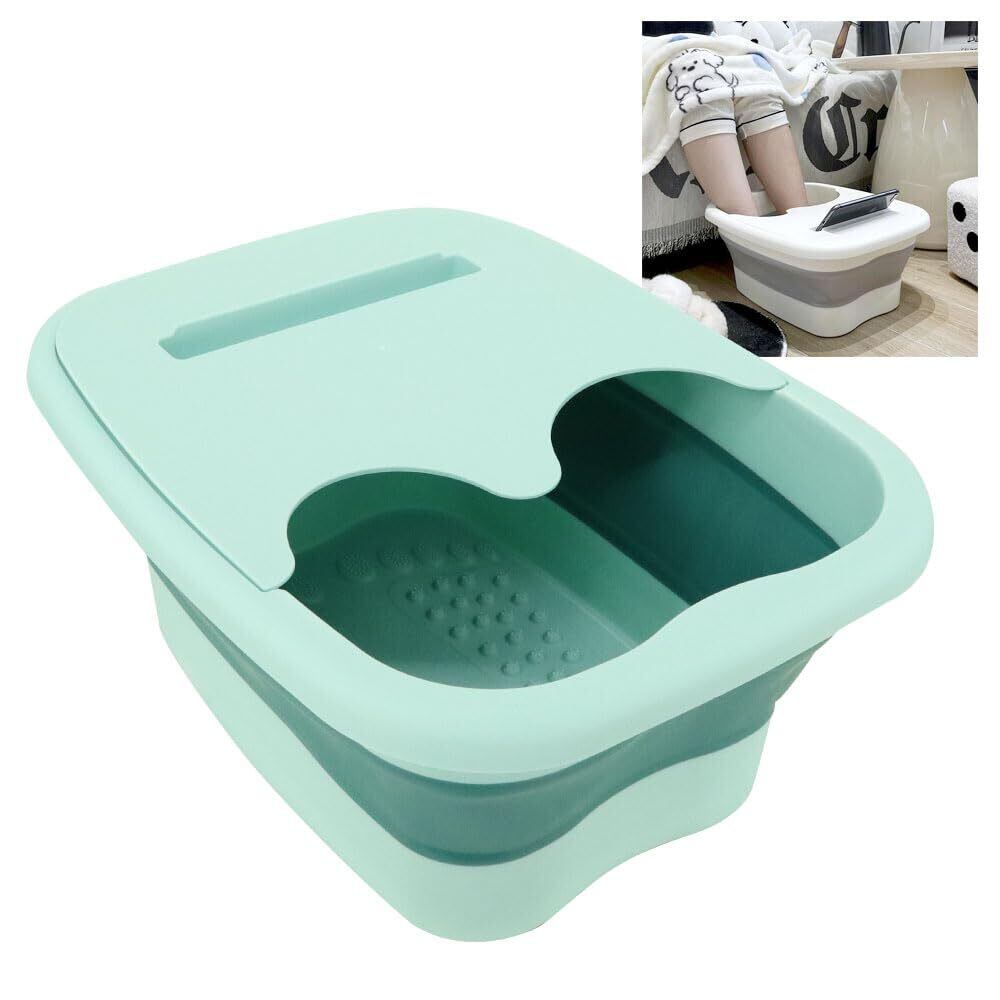 折り畳み式フットバス ながら足湯 フタ付き 持ち運び 自宅 アウトドア 軽量 (グリーン)