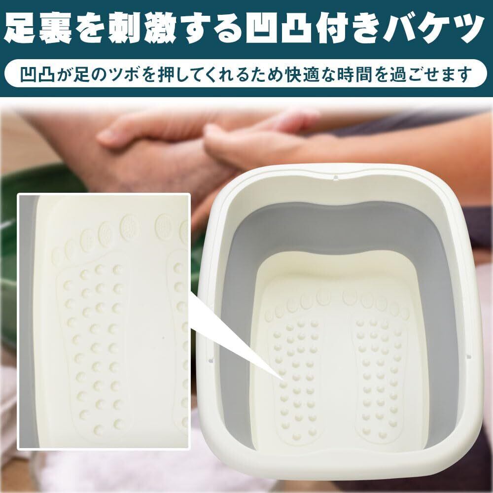 底面には足ツボ用に凸凹加工が施されており、温まりながら同時にマッサージも楽しめる一石二鳥のアイテムです。足湯はもちろん、15度前後の水を入れて足首まで浸かって涼を感じる足水としてもお使いいただけます。