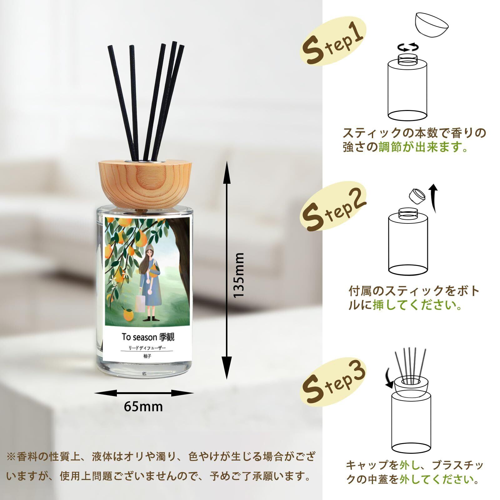 【芳香剤香りの持続時間】ディフューザーの香りが3カ月持続し、長持ちしてくれるので、柚子の香りが好きな方にぴったりのアイテムです。甘さの中にフルーティーさを感じる香りで、優雅なひとときを演出してくれます。