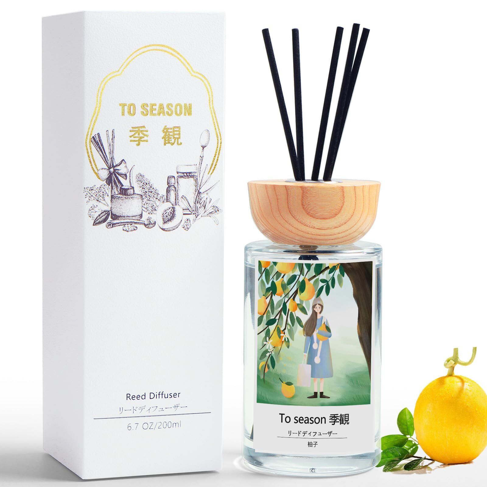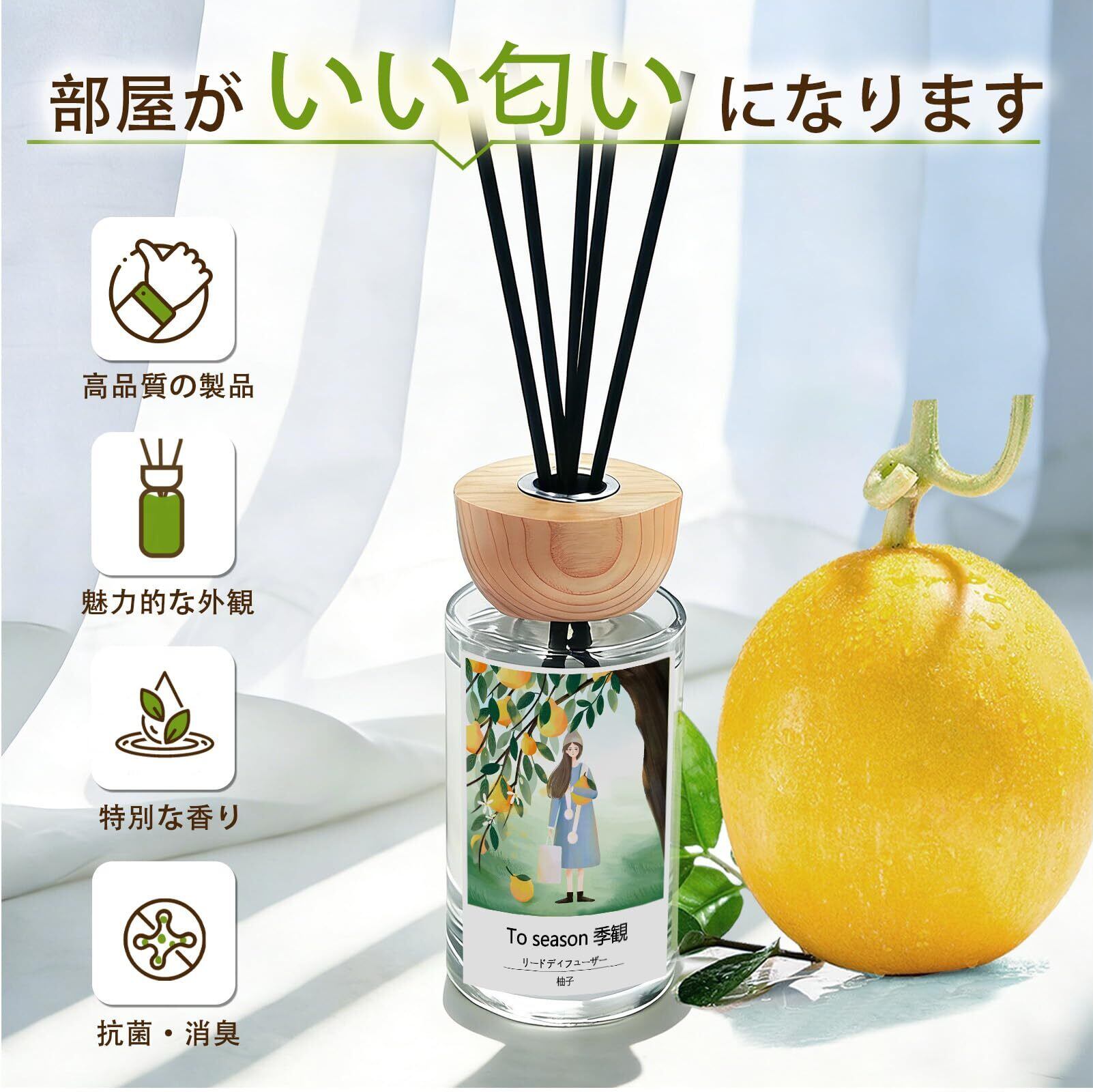 ディフューザー ルームフレグランス リードディフューザー 柚子の香り 大容量 200ml 約3ヶ月分 スティック付き アロマディフューザー フレグランス インテリア 消臭 除菌 爽やか 優しい香り 玄関 芳香剤 部屋用 誕生日 母の日 プレゼント 人気