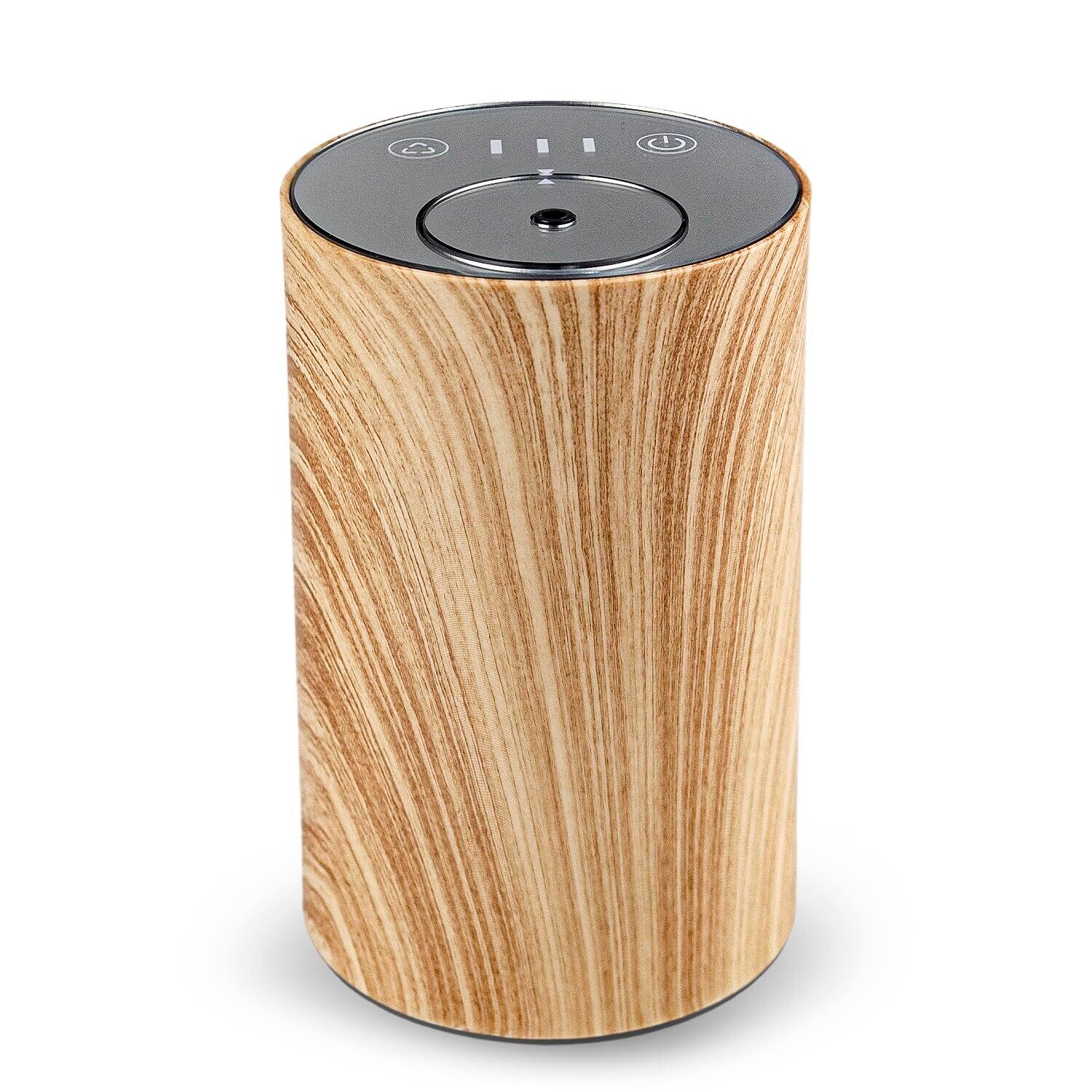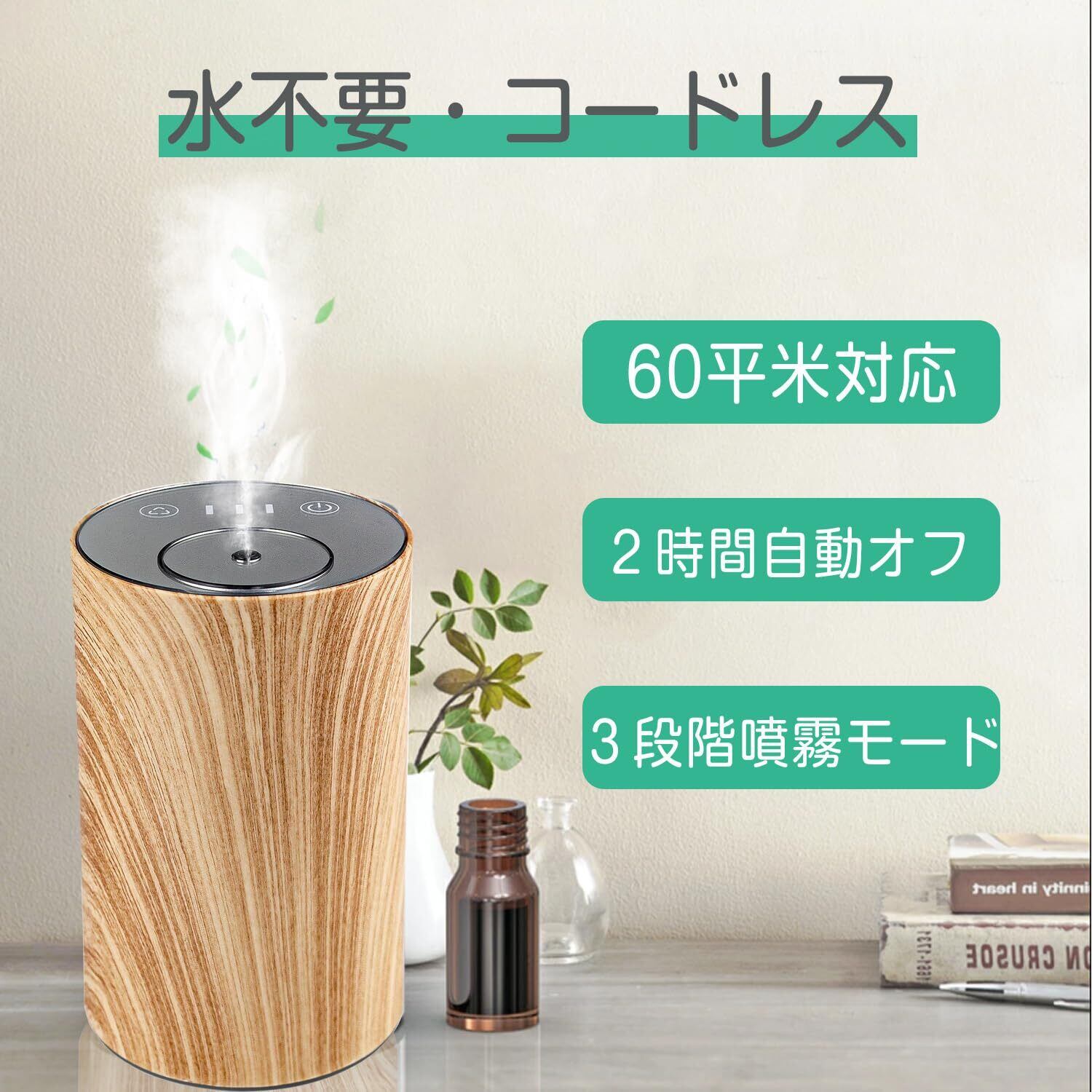 アロマディフューザー ネブライザー式 水なし エルエンスタジオ コードレス車用ディフューザー アロマ芳香器 噴霧量調整可能 USB充電式 静音 精油瓶2個付き ヨガ室・部屋・車載・店舗などに適用 日本語説明書付き (木目調)