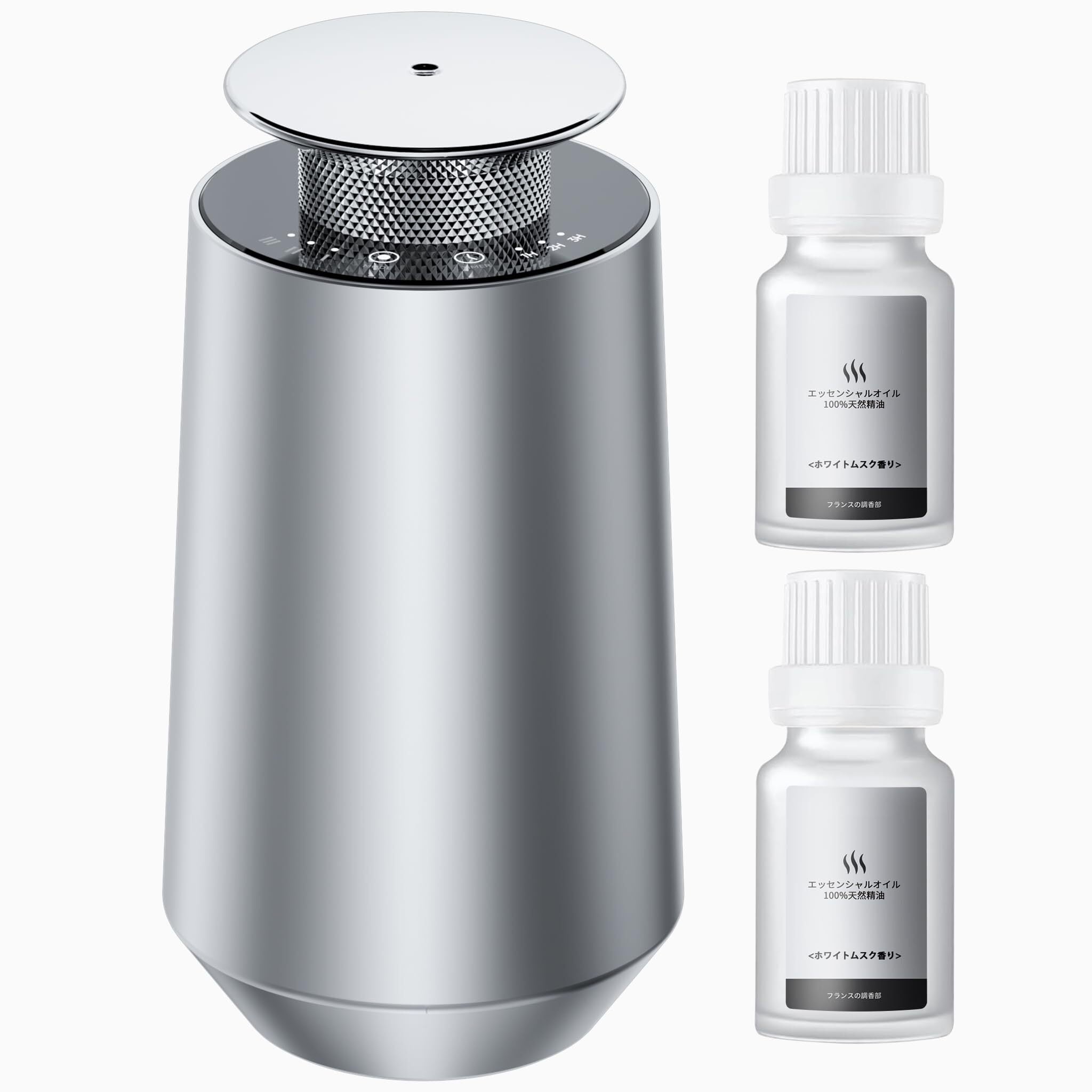I400 アロマディフューザー 水なし ネブライザー方式 コードレス低騒音設計最大 36 時間使用タイマー機能 & 自動 ON/OFF DIY 対応 航空アルミニウム素材 ホワイトムスク香り アロマオイル